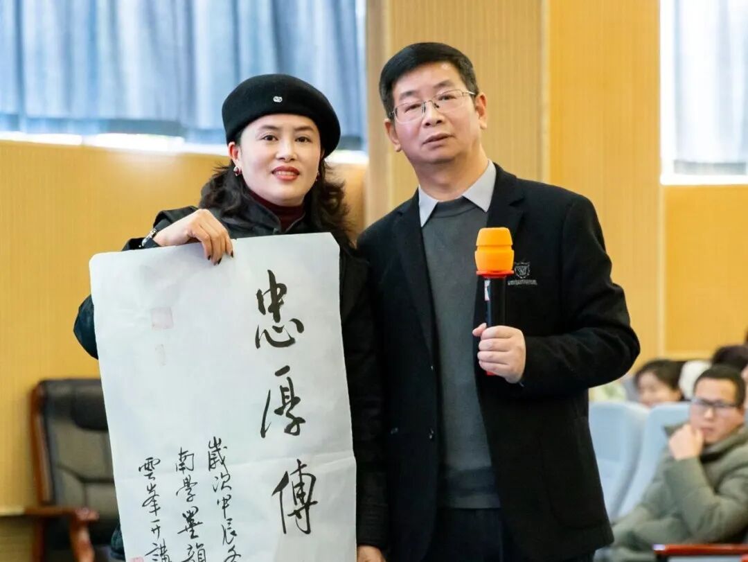 同时,他随机邀请现场家长分享自身感受,赠送了他题写的书法作品。张老师特别强调了培养青少年积极心理品质在成长中的关键作用,家长给孩子最好的礼物就是培养孩子幸福的品质——拥有积极心理品质,并鼓励大家塑造与拓展青少年的积极心理品质。