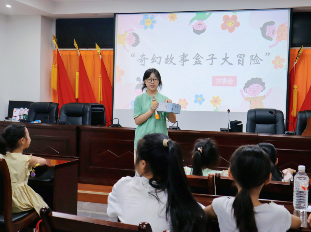 7月6日下午,衡阳市岳屏镇东湖村村委会二楼大会议室洋溢着好奇的探索声、天马行空的讨论与悄然流淌的温情。衡阳师范学院教育科学学院“青葵湘阳,青春筑梦”携爱志愿服务团在此精心策划了一场别开生面的“奇幻故事盒子大冒险”特色心理活动,带领村里的孩子们踏上了一场触摸未知、协作共创、勇敢表达、倾听内心的奇妙旅程。