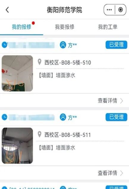 第五步可在我的报修中查看修理进度,有任何问题可联系生活部相关人员