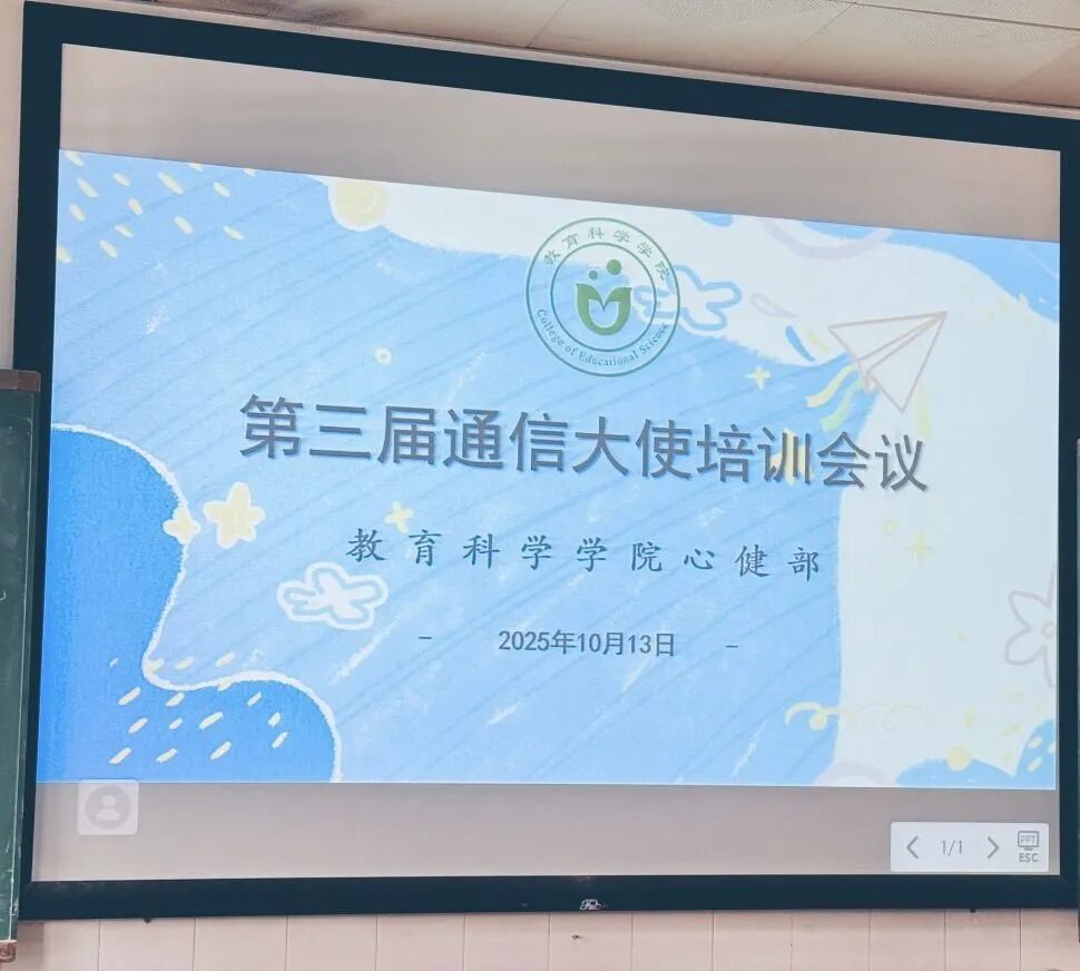 为提升通信大使书信沟通专业能力,深化校地心理健康教育协作,2025年10月13日中午12点,我院心理健康部于行知楼302教室召开第三届通信大使培训会议,为“心灵信箱”活动持续赋能,助力中小学生心理健康成长。