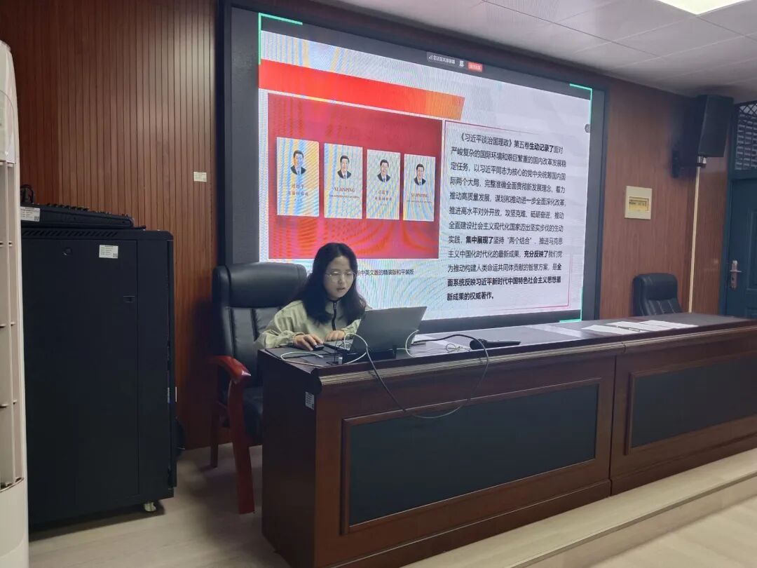 为深化理论武装,筑牢理想信念,2025年10月22日,教育科学学院党支部组织开展《习近平谈治国理政》第五卷专题党课学习活动,全体党员参会,由张一佳同志主讲。