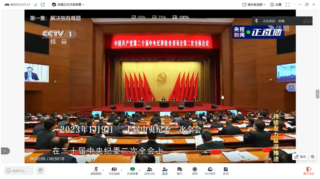 为深入学习贯彻习近平总书记关于全面从严治党的重要论述,我院党总支于2025年7月26日组织全体党员集中观看央视新闻播出的电视专题片《持续发力 纵深推进》第一集《解决独有难题》,共同学习中国共产党第二十届中央纪律检查委员会第二次全体会议精神。