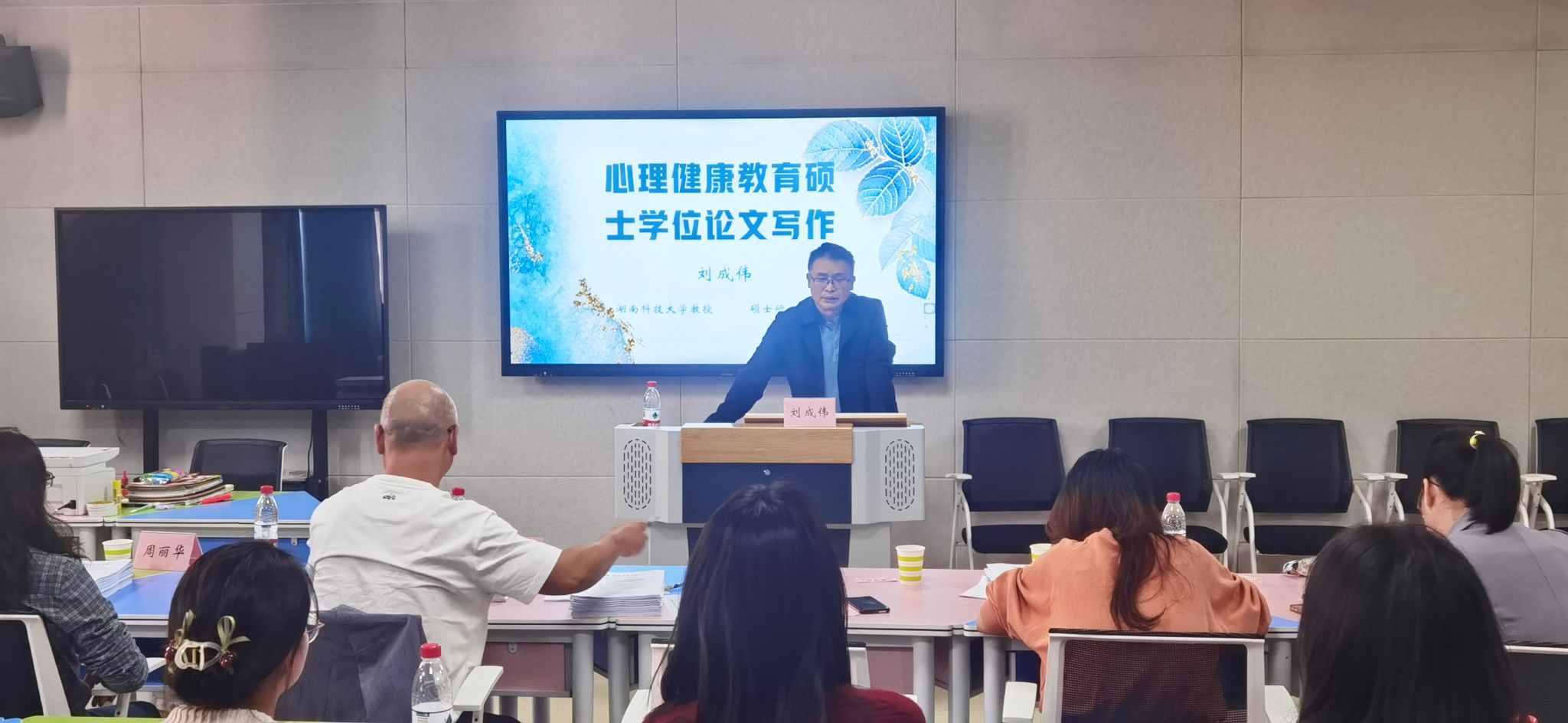 2024年11月9日,湖南科技大学刘成伟教授受邀到我院为硕士研究生开展题为“心理健康教育硕士学位论文写作”的精彩讲座。本次讲座在行知楼509举行,旨在帮助学生掌握论文写作的关键技巧,提升论文质量,为学生的学术生涯奠定坚实基础。