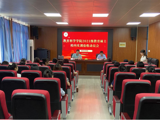 2022年6月1日,教育科学学院在西校区行知楼408报告厅举行了2021级教育硕士校内实践训练验收动员会,教育科学研究院副院长邓育武、研究生秘书王祖霖老师及2021级教育管理专业、心理健康教育专业全体研究生参加。会议由教育科学研究院副院长邓育武主持。